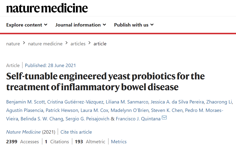 新療法!Nature子刊:酵母菌“變身”工程益生菌,可用于治療炎癥性腸病